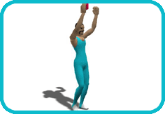 Raise both hands up and while moving down both hands kick up your