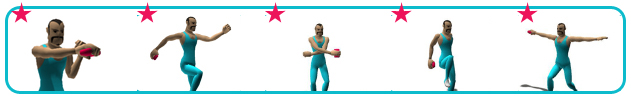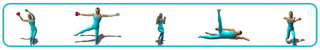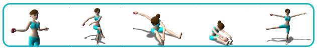 等级 4: 腰部快扭 双手上扬、单腿站立 手臂侧举、后踢腿、侧卧挥动手腿、双手交叉 单腿前踏