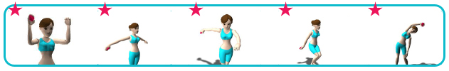 等级 l 2: 划船拉伸 , 手臂上下摆动, 脚后跟拉伸, 垂直螺旋运动, 坐着背部拉伸.