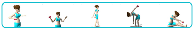 Aerobics level1: Straight Boxing, Foot Step, Cross-Armed Stretch, Knee Kick, Arms Open with a Step