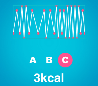 運動の結果はグラフとABCのランクで表示されます。きれいなグラフを描くようにリズムよく行って、Aを出しましょう!