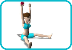 両足を広げて座ります。上にあげた両手を前に倒し、それに沿って上半身も前に倒します。太ももの内側が伸びるのを意識しましょう。