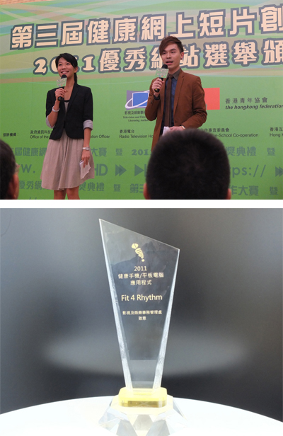 हमारी आईफोन ऐप्प "फिट फॉर रिदम" का चुनाव हांगकांग के "टीवी फुटेज एंड एंटरटेनमेंट मैनेजमेंट स्टेशन" द्वारा साल 2011 के "मोबाइल फ़ोन एंड टेबलेट पीसी फॉर हेल्थ अवार्ड प्रोग्राम" के लिए किया गया है। 18 फ़रवरी 2012 को एक पुरुस्कार वितरण समारोह में ट्रॉफी दी जाएगी।