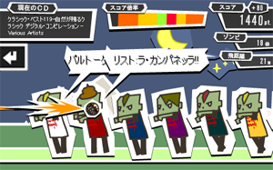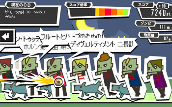 Defeat the zombies flying the music CD! Play with listening the latest hit chart as BGM Exciting action game !
